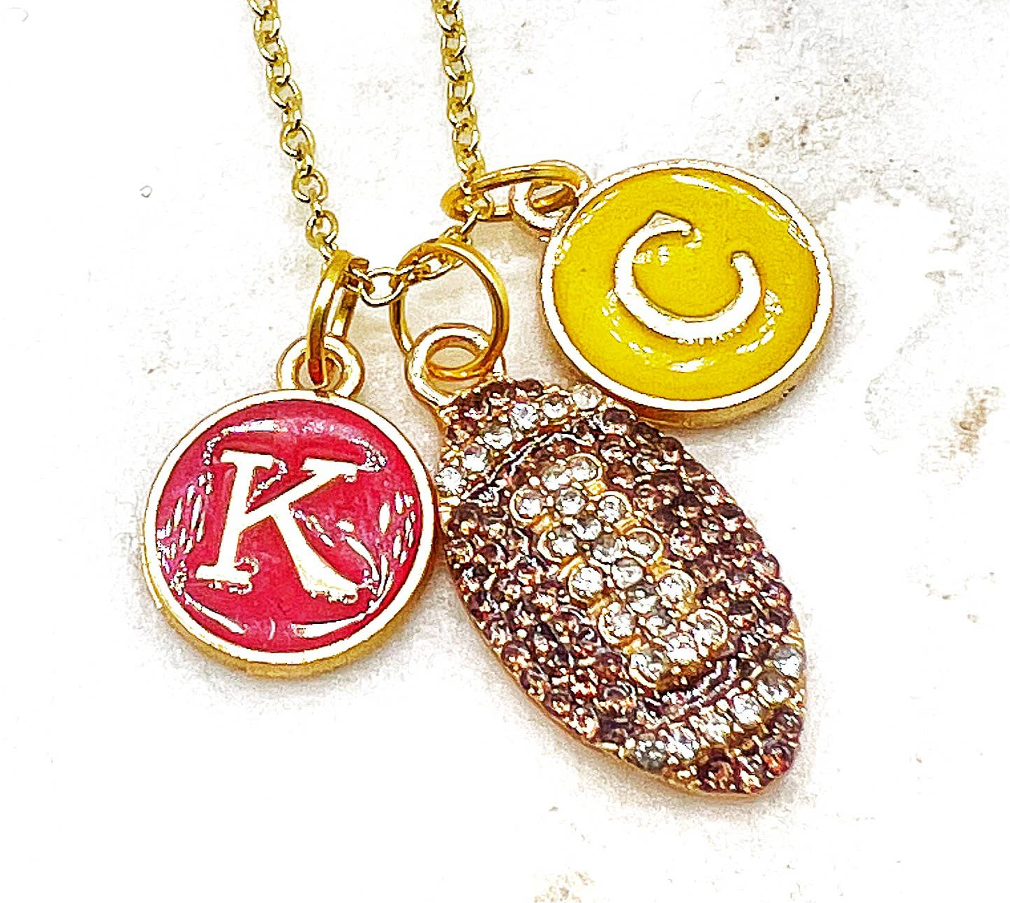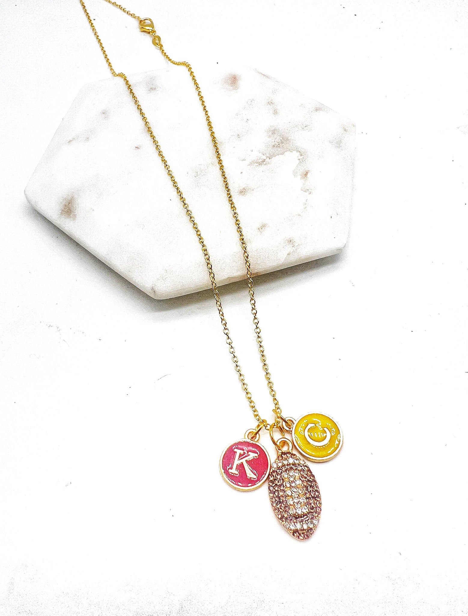 Red Yellow KC Football Charm Chiefs Kansas City Necklace