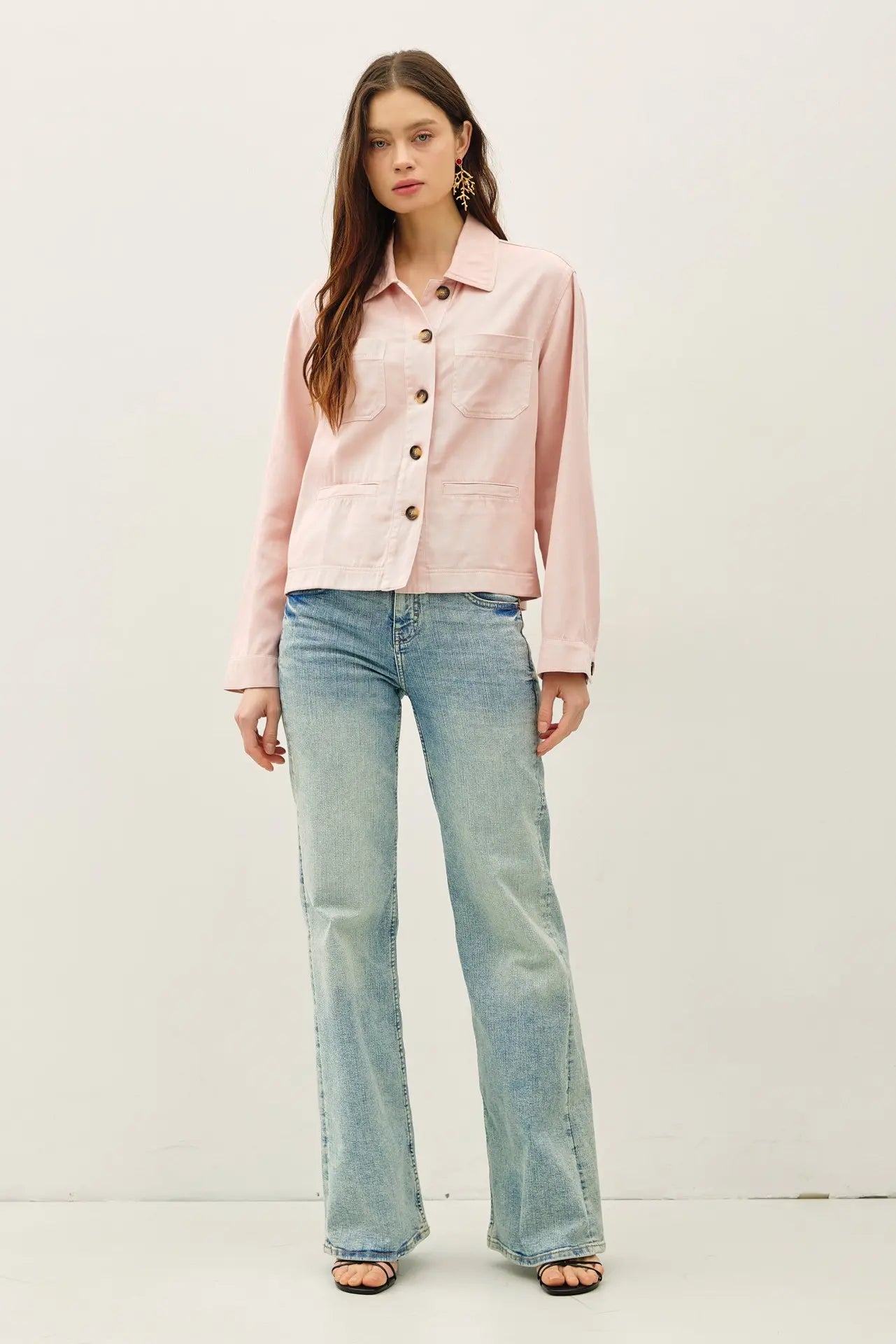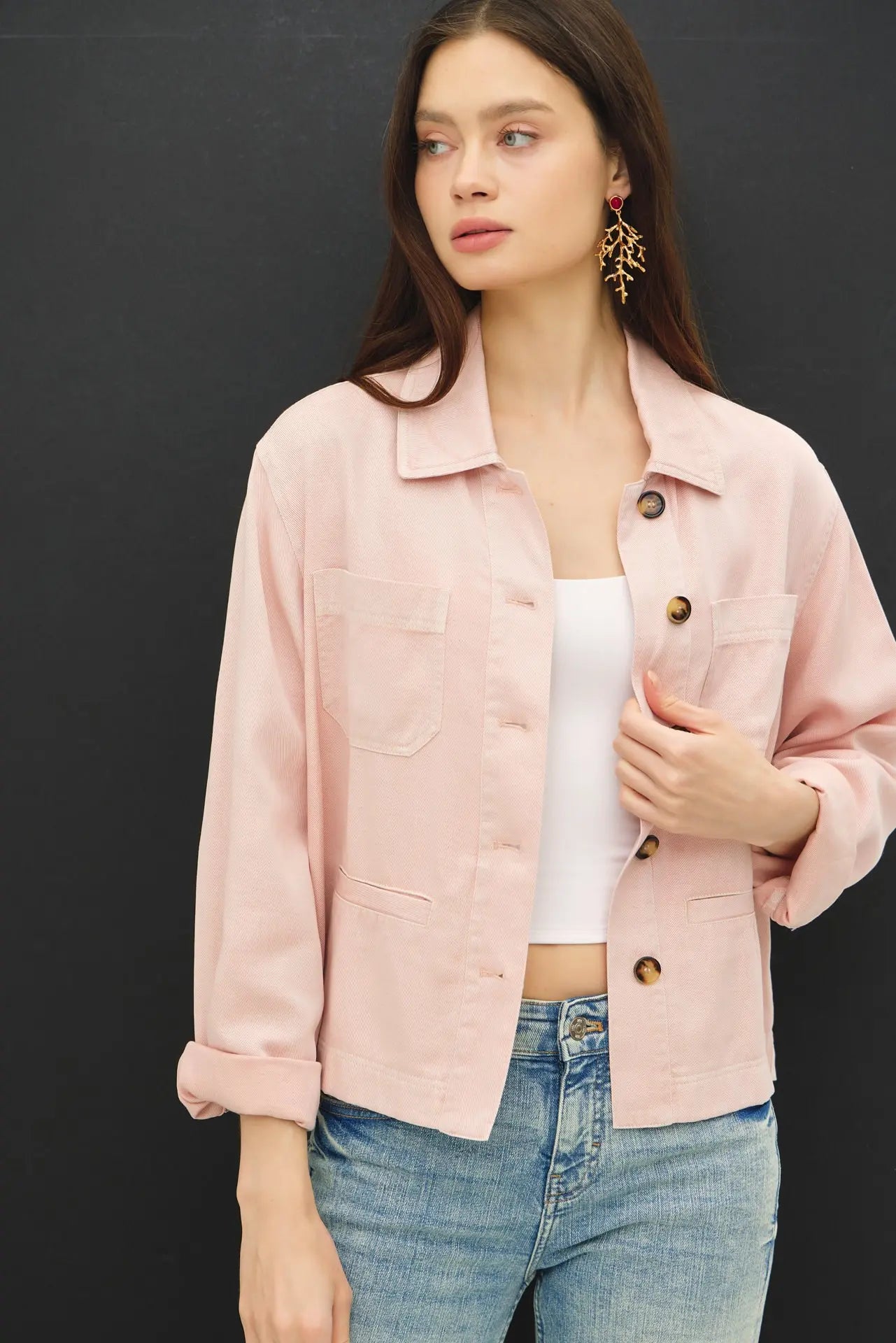 Soft cotton peony pink jacket. With pockets.