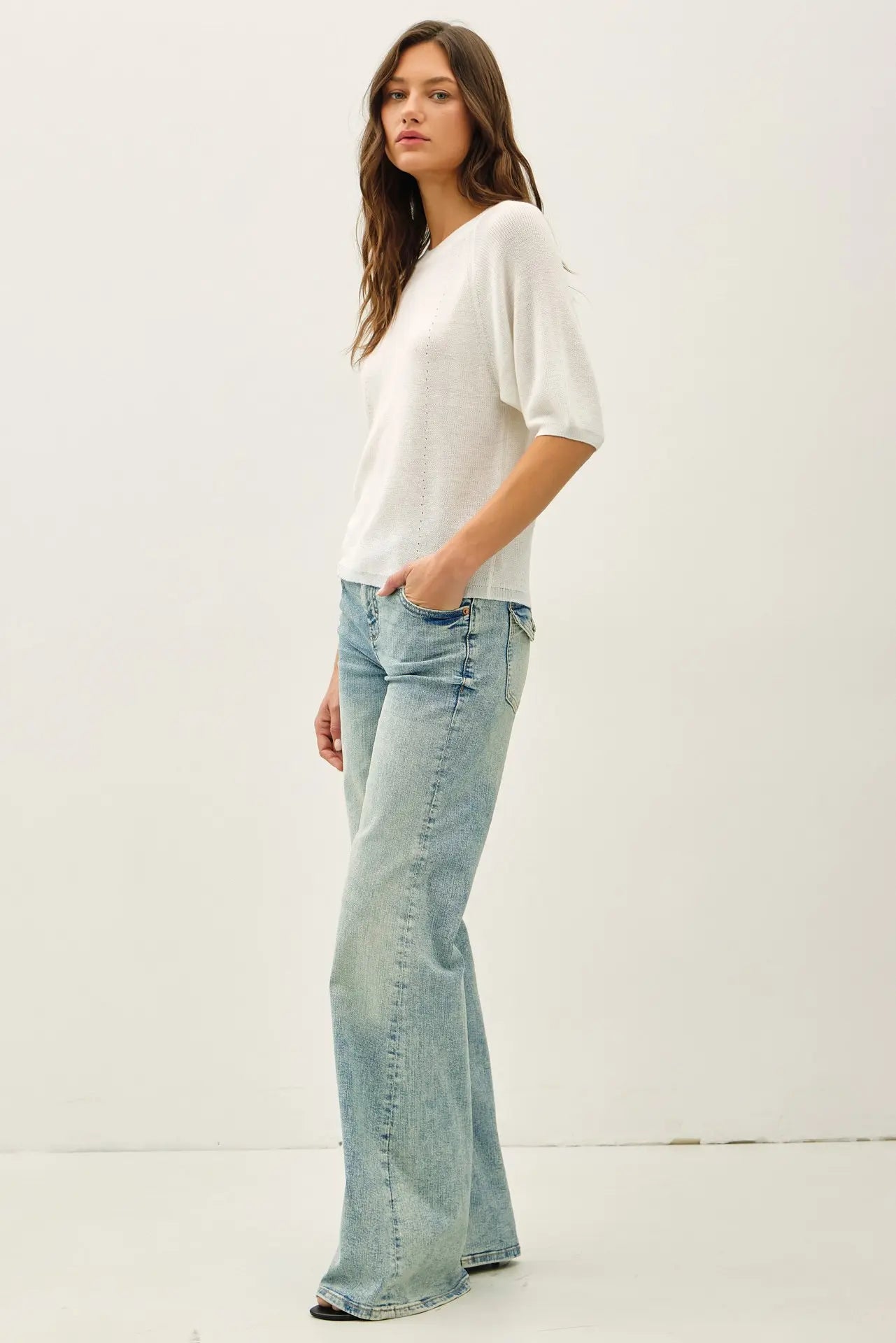 Whit esoft lightweight ribbed knit cropped sweater tee.