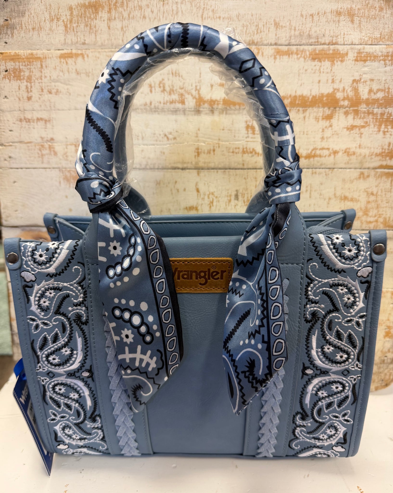 The Wrangler WesternPaisley Tote Bagcombines style and functionality in a structured design with braided details and decorative scarf handles. Its vintage Western aesthetic delivers timeless paisley patterns and boho charm.