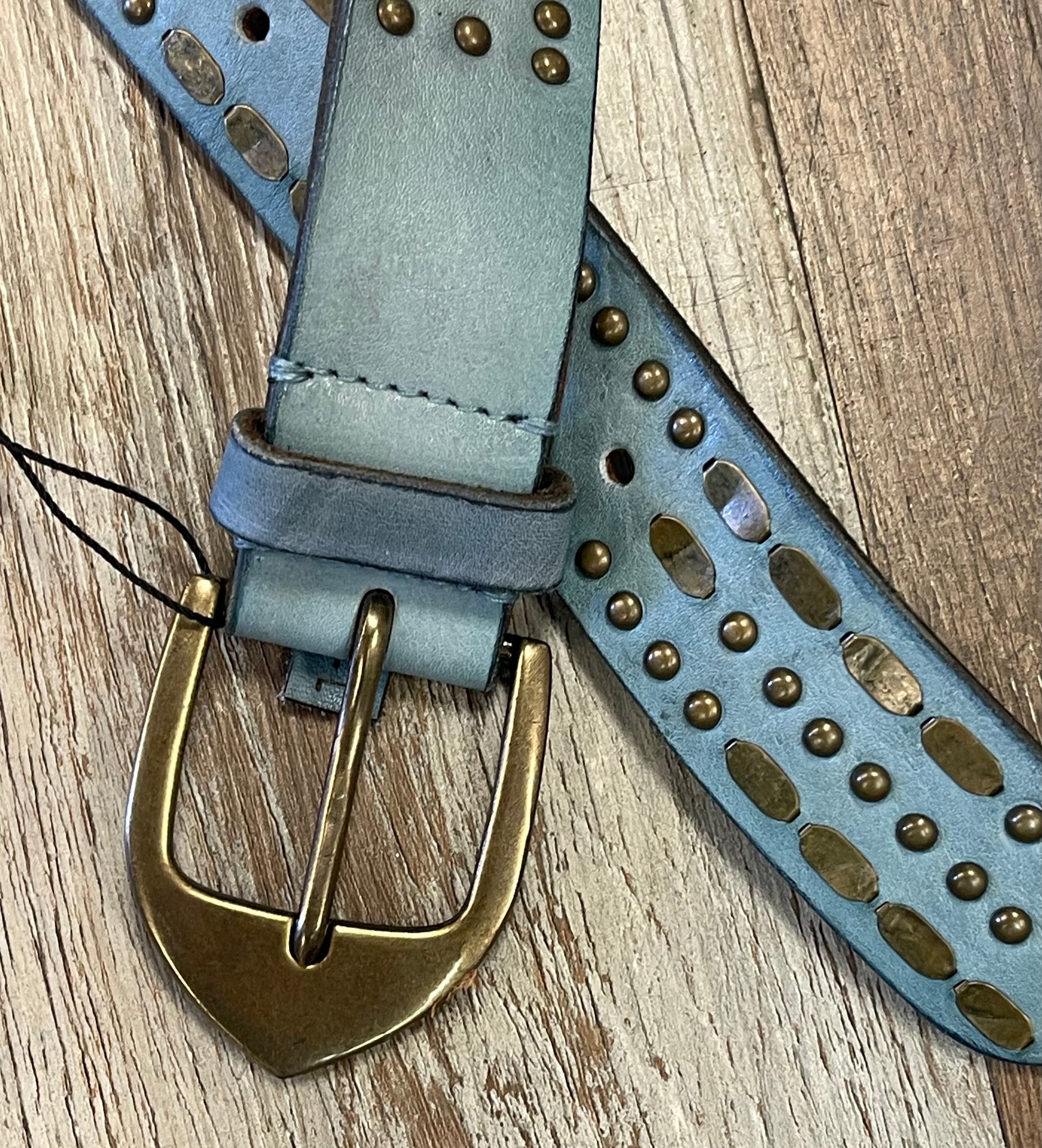 This belt is a sleek and stylish accessory, featuring a demure blue hue and special accent stitching. Crafted from high-quality leather. It's perfect for adding a pop of color and personality to any outfit, and will be a versatile and fashionable choice for both casual and more formal wear.