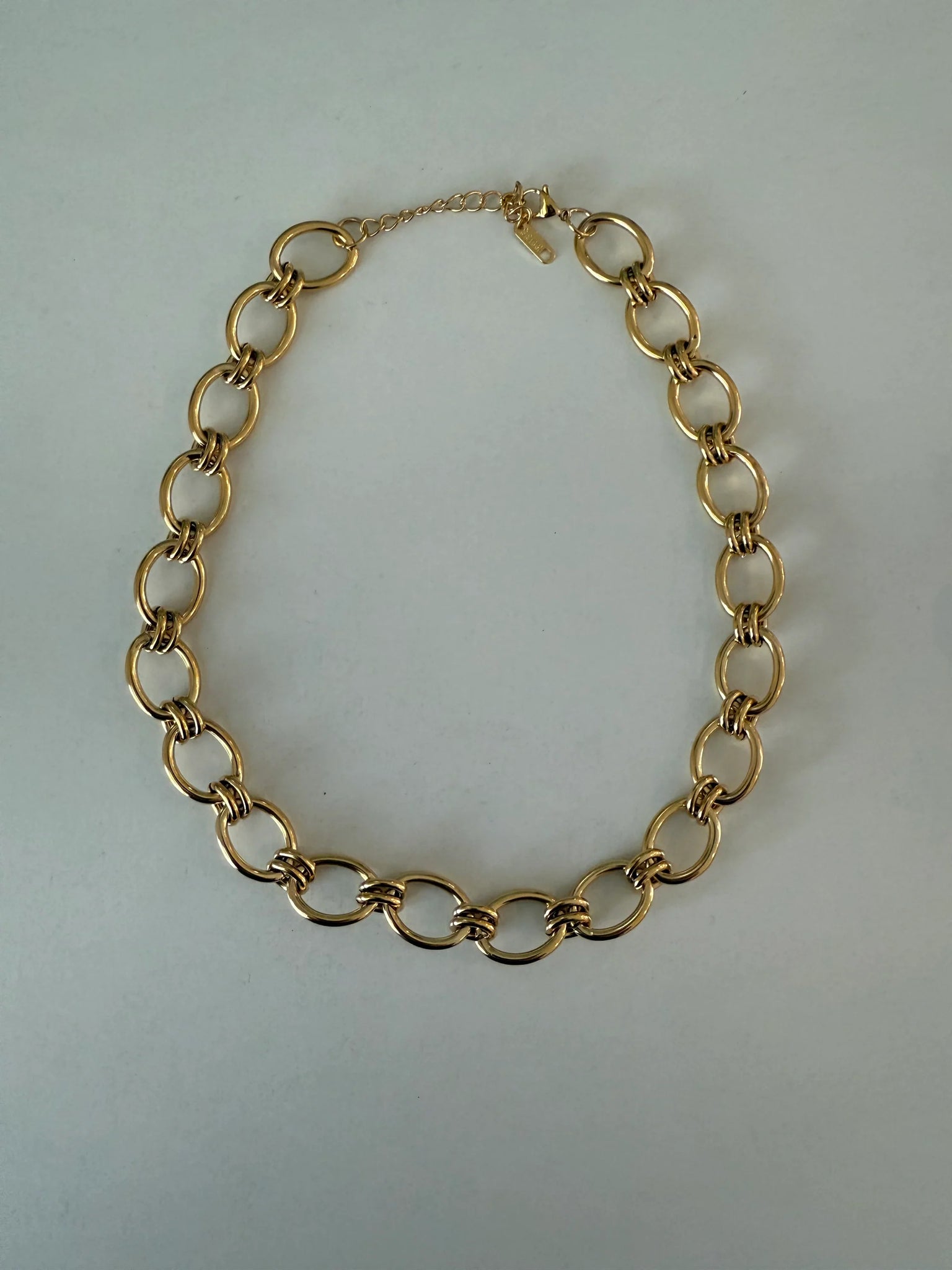 Introducing the Sloan Necklace, a sophisticated and elegant statement piece for everyday wear. Made with 18k gold plating, this necklace exudes class and style, making it a perfect addition to any outfit.