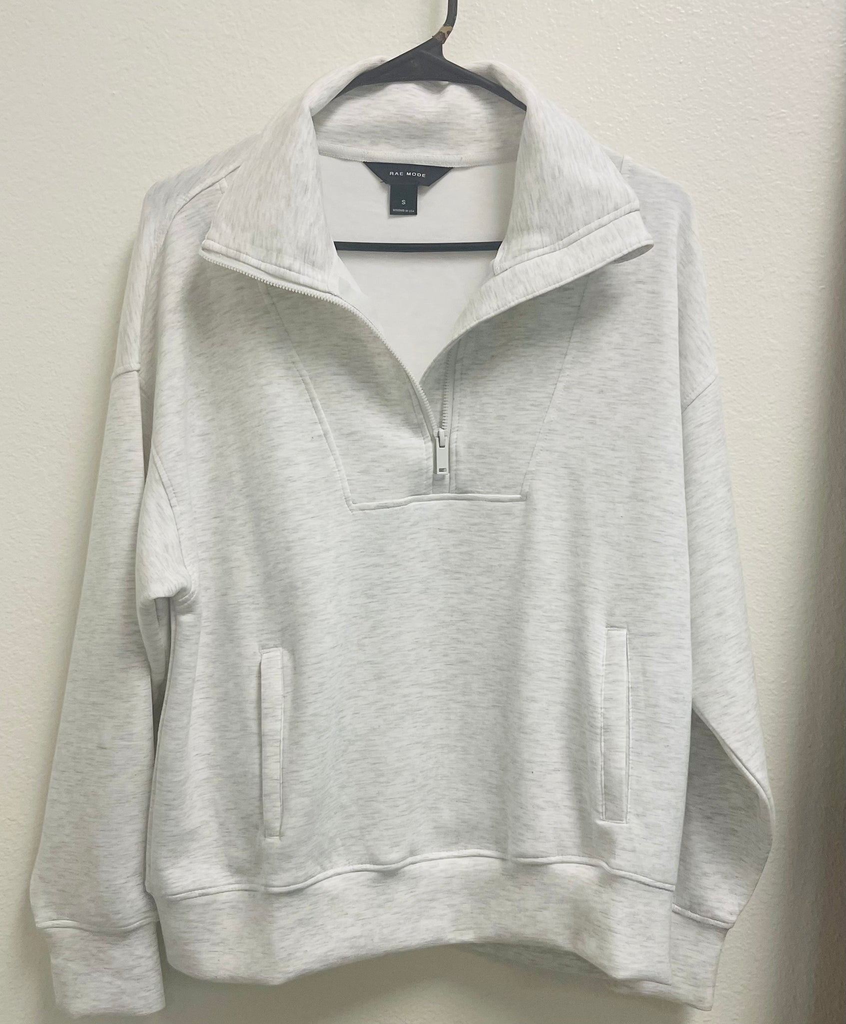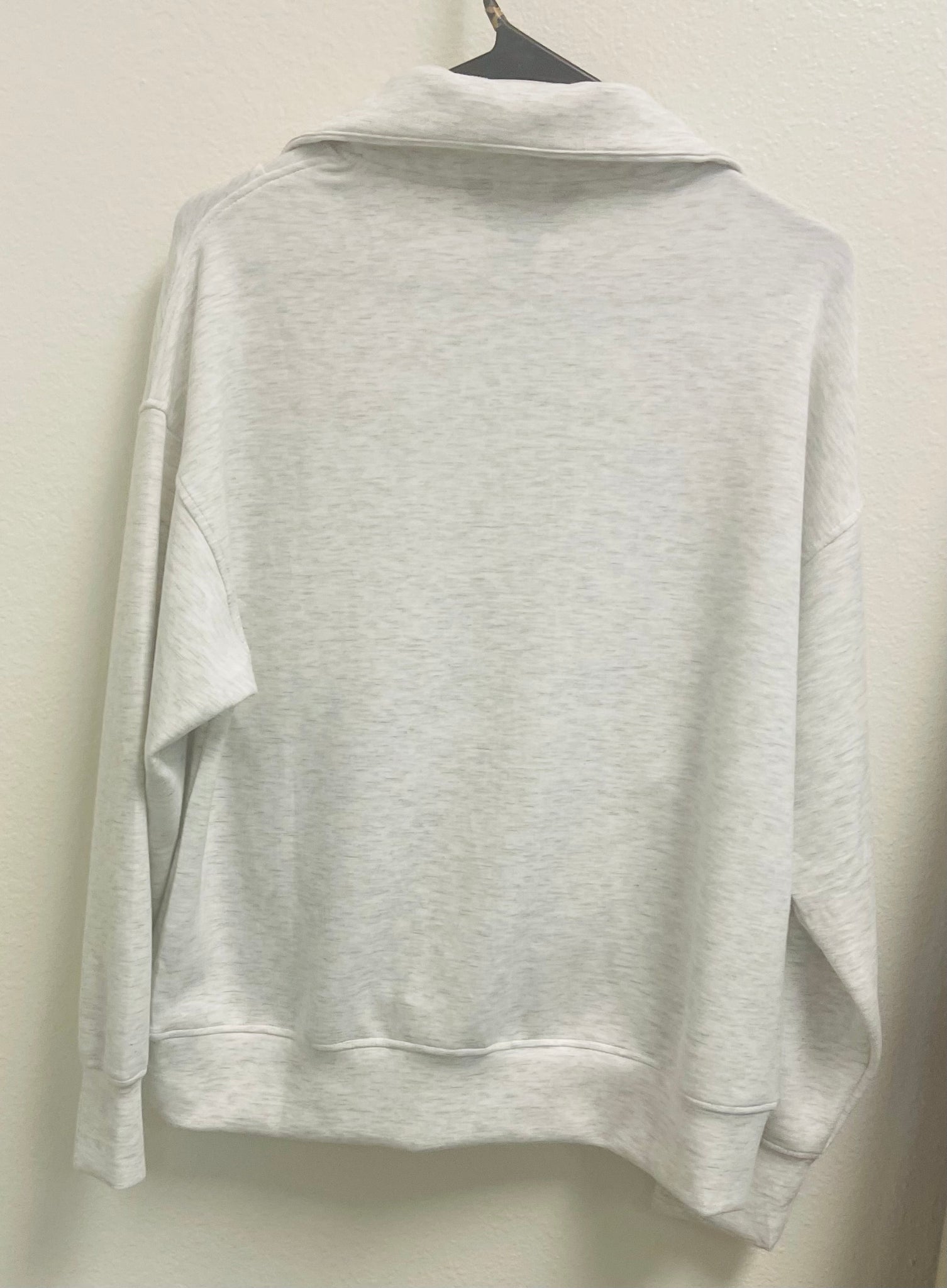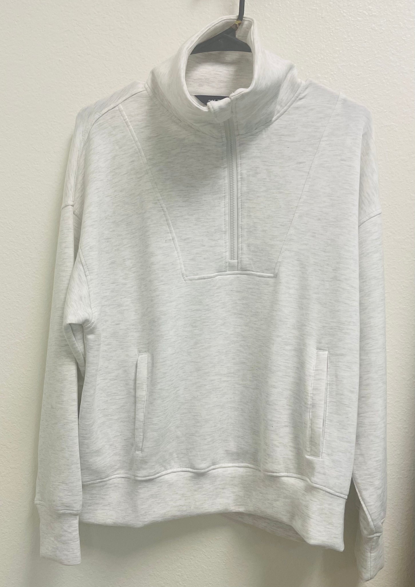 Cozy soft scuba quarter zip mock neck pullover top with pants.