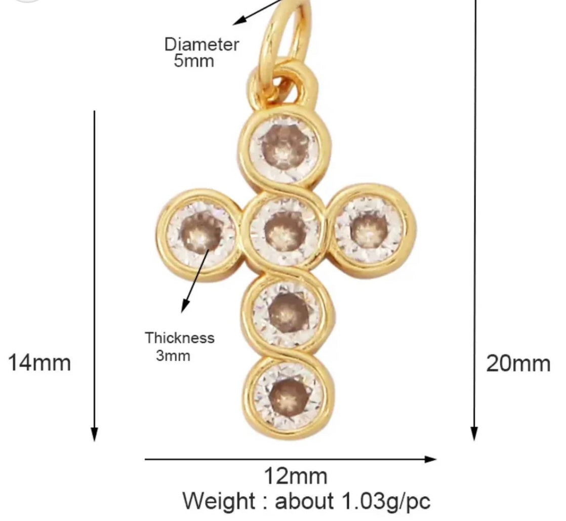 A pretty sparkly small cross charm. Water Resistant Charm that elevates your style. Charms are a must-have for any fashion-forward individual. Express your individuality and sophistication with this one-of-a-kind accessory.