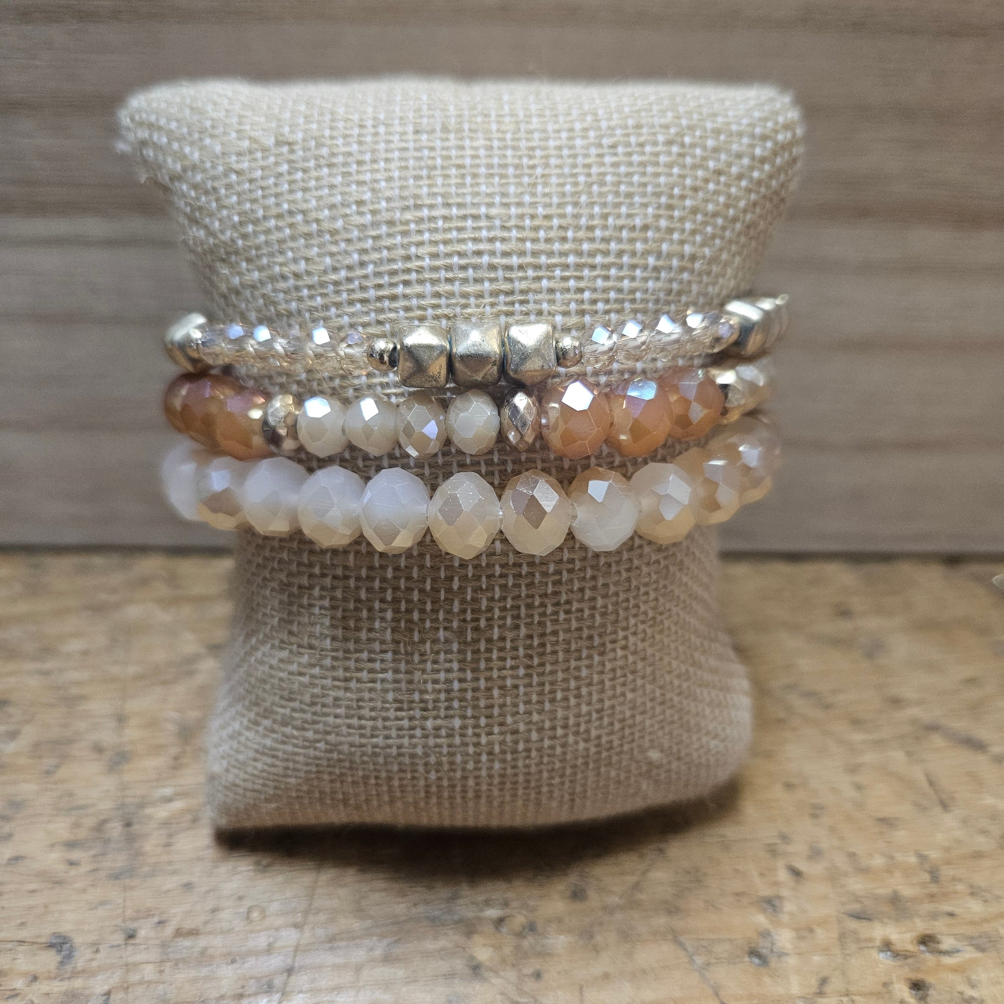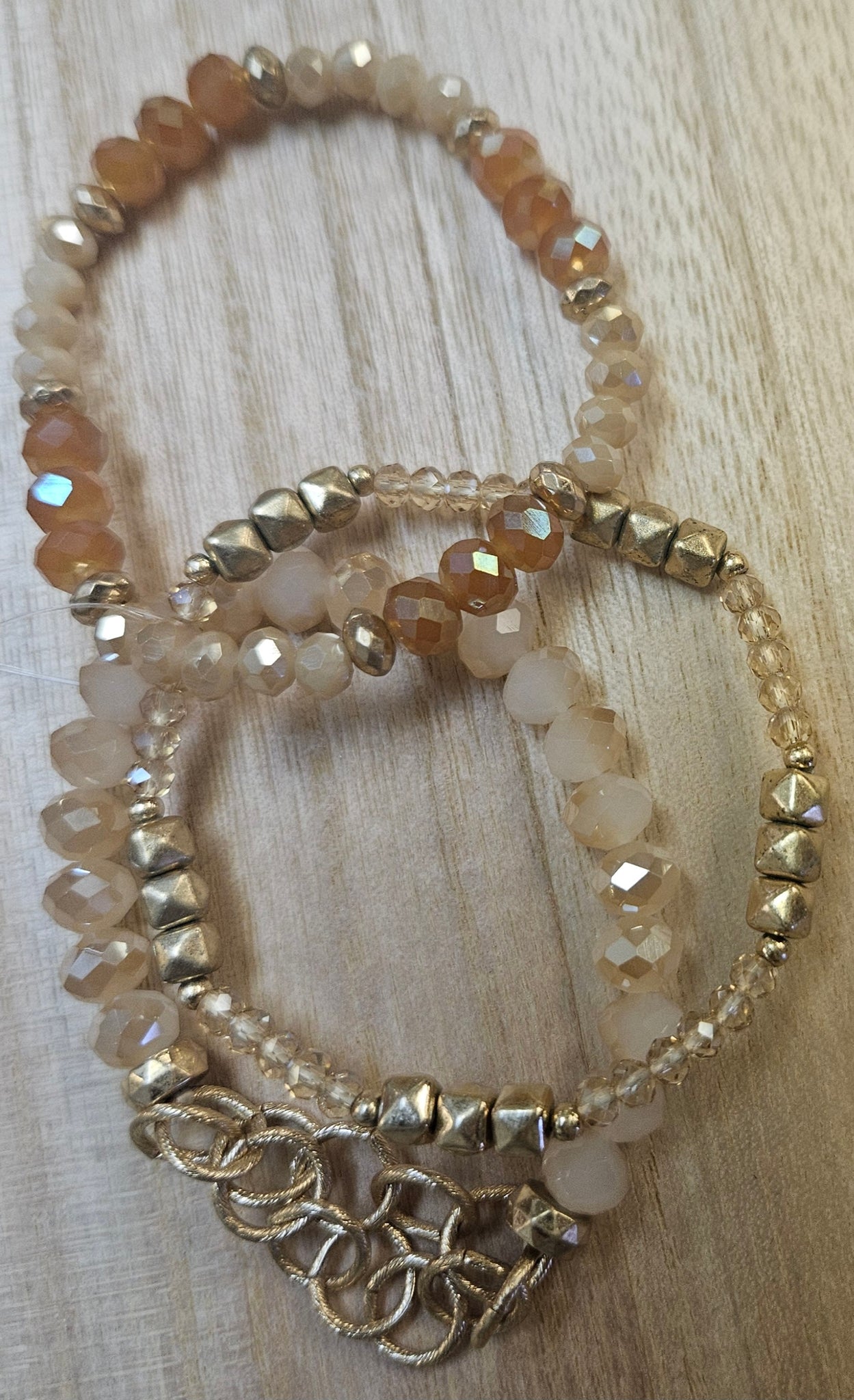 Fantastic Light Pink And Salmon Color Three Piece Set Bracelets With Golden Chain