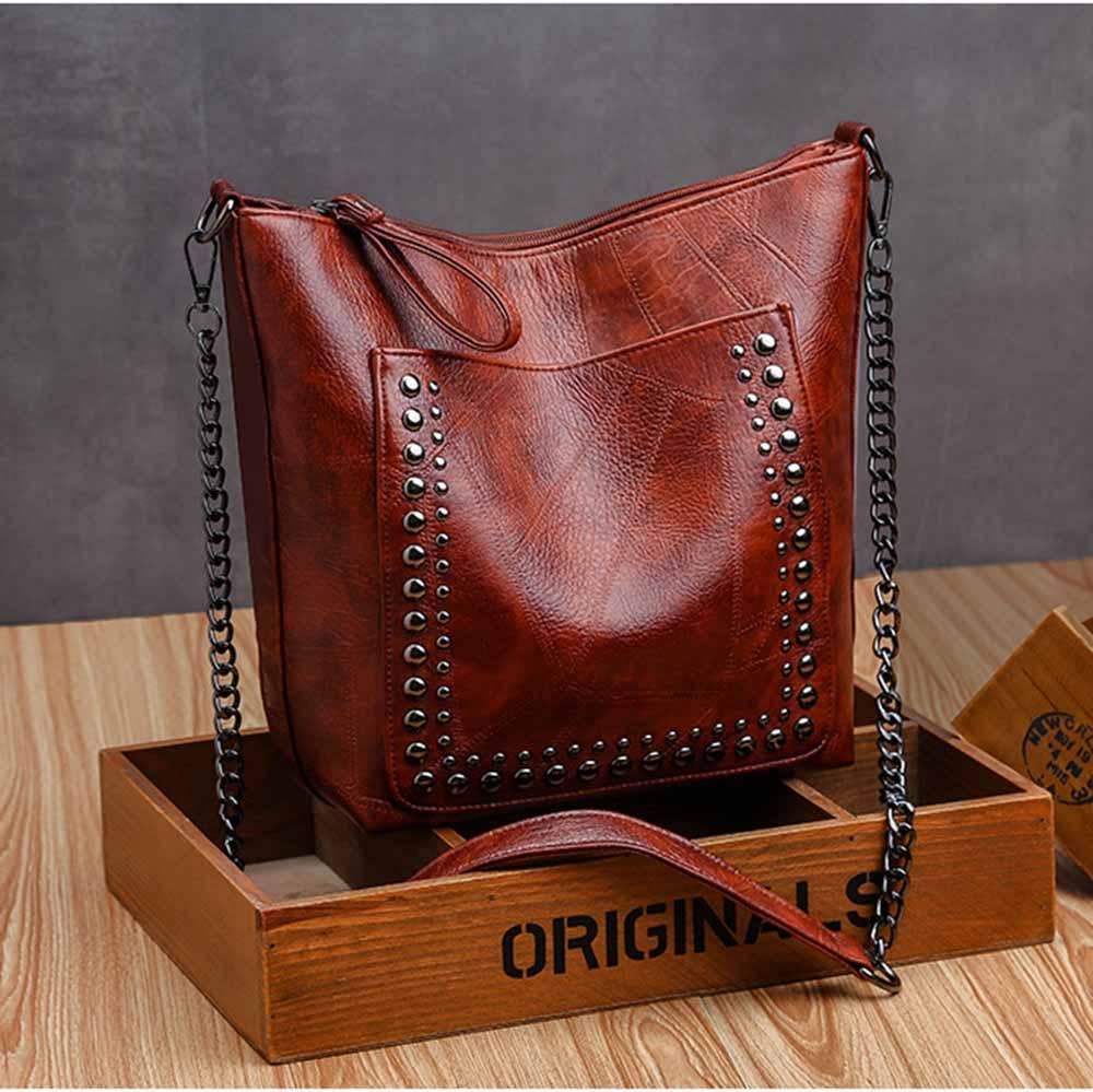 Wholesalesir - Fashion Chain Rivet Shoulder Tote Bag: Brown